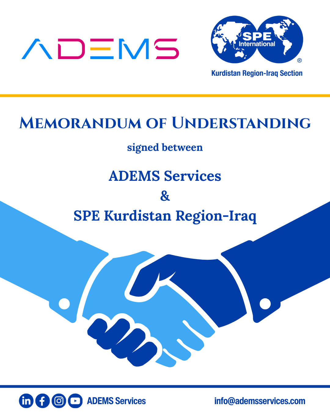 Memorandum of Understanding (MoU) between ADEMS Services and the SPE Kurdistan Region-Iraq Section.